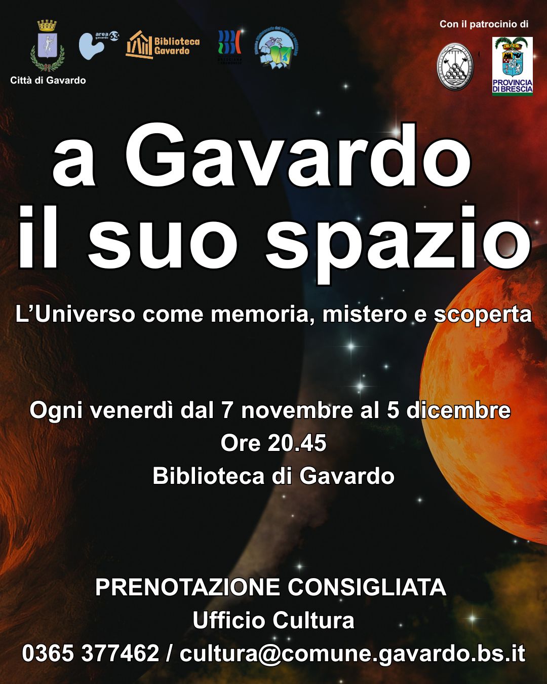 La quinta edizione della rassegna "A Gavardo il suo spazio" ci porterà ad esplorare l'Universo, tra memoria, mistero e scoperta, guidati da esperti studiosi dello spazio.
