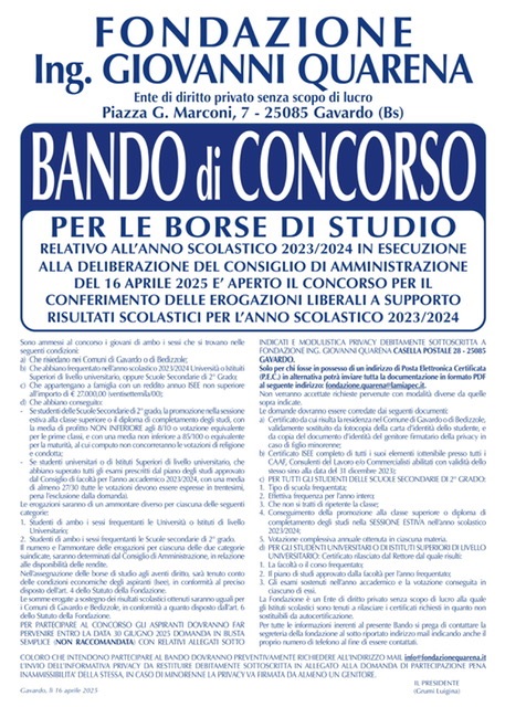 Fondazione Quarena: bando di concorso per le...